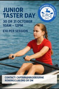 We have two Junior Taster Sessions available in half term. Book early as numbers are capped – contact captain@broxbournerowingclub.org